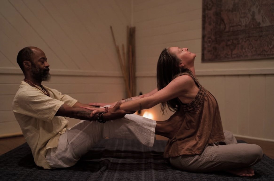 Thai Massage is a living tradition in which the practitioner uses thumbs, hands, elbows, knees and feet. These tools are used to compress muscles, aid in offering gentle traction, stimulate acupressure points, and to move and stretch the body. This releases tension, creates space and allows room for healing in the body. The recipient lies comfortably offering no aid, allowing the practitioner to offer the energy and bodywork to areas of need. At the beginning and end of each session is an offering of Metta - Loving Kindness - and an encouraging of all things positive to be present in the healing environment.